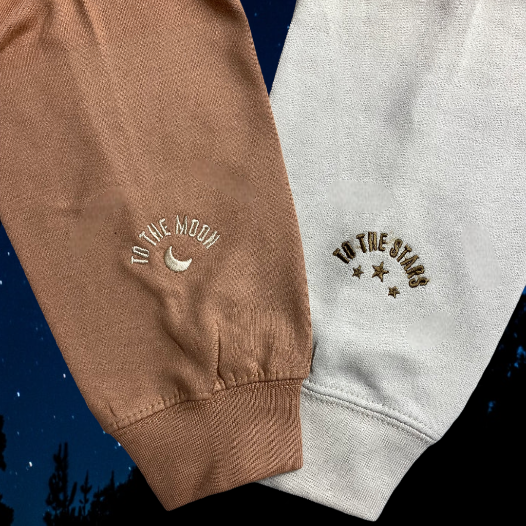 Embroidered To The Moon, to The Stars Sleeve Hoodies