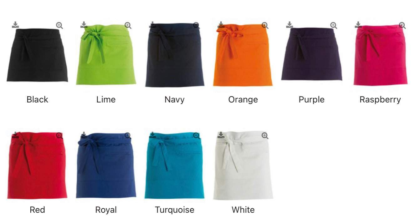 Constructed from 100% heavyweight cotton twill, the short apron is available in a vast range of colours suitable for use throughout all hospitality sectors.